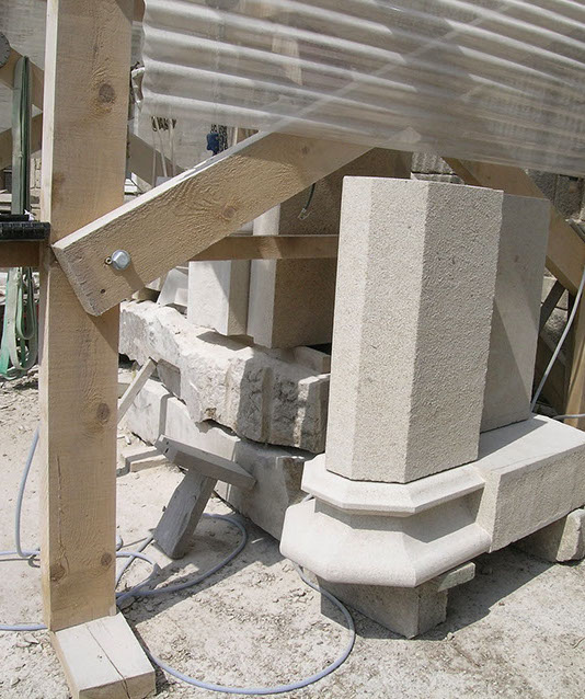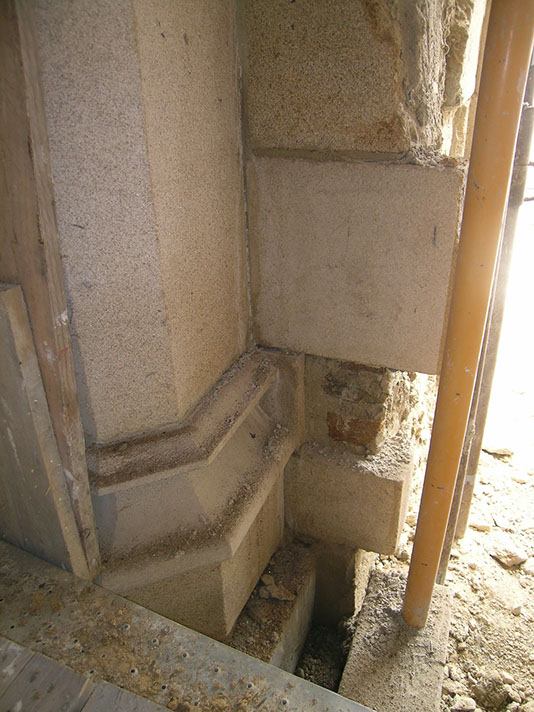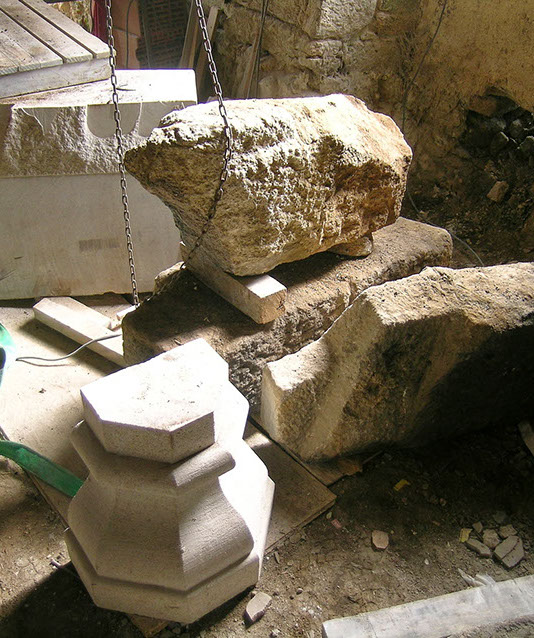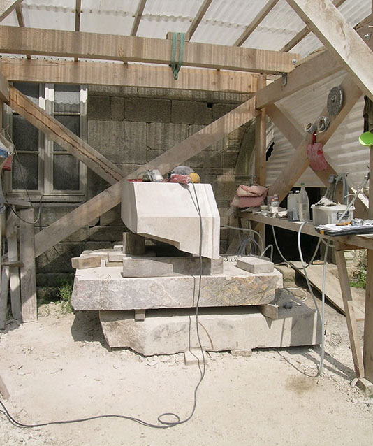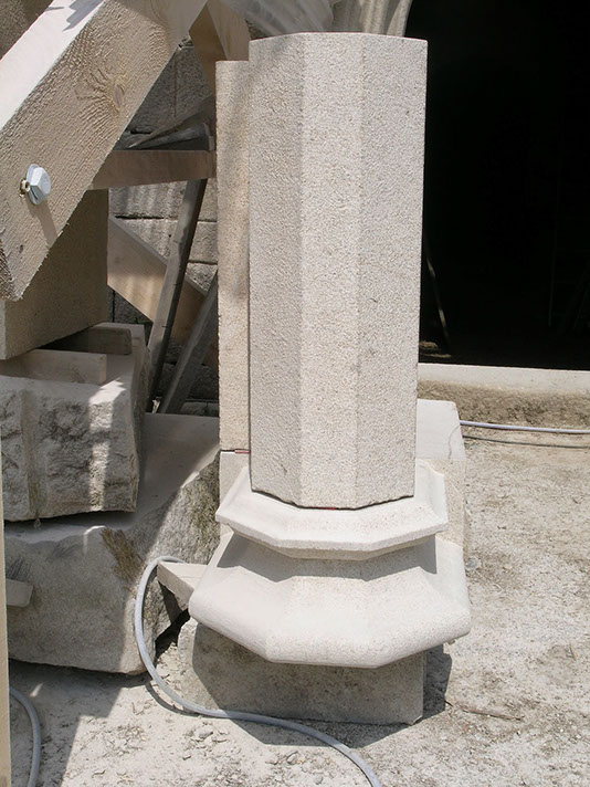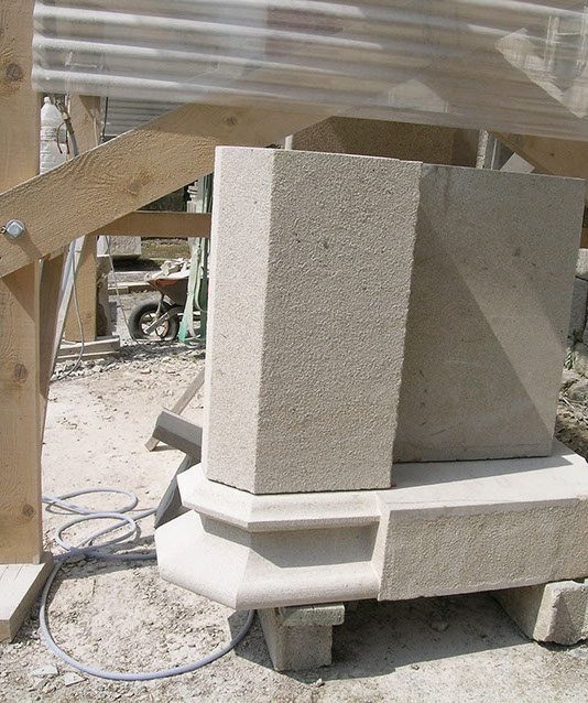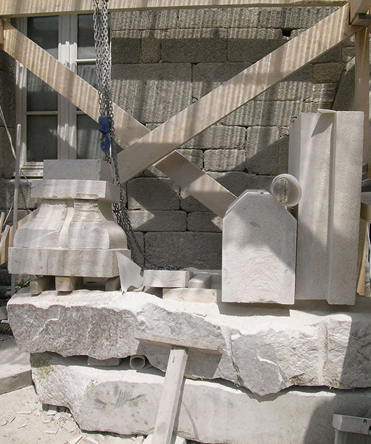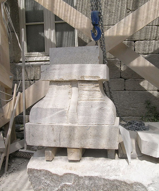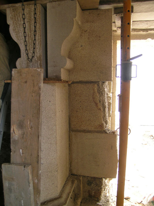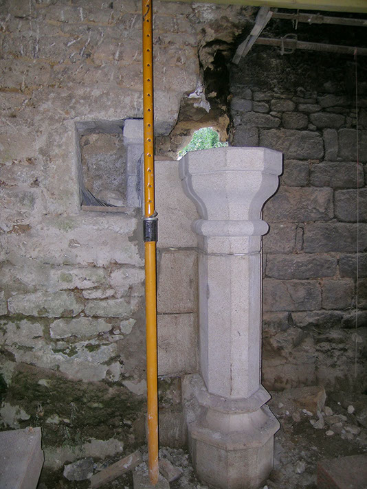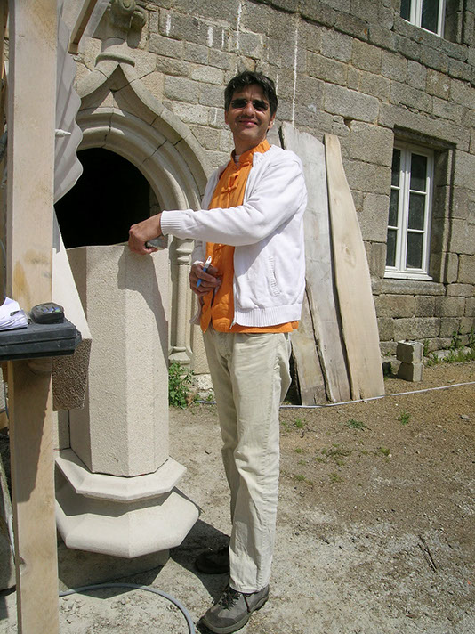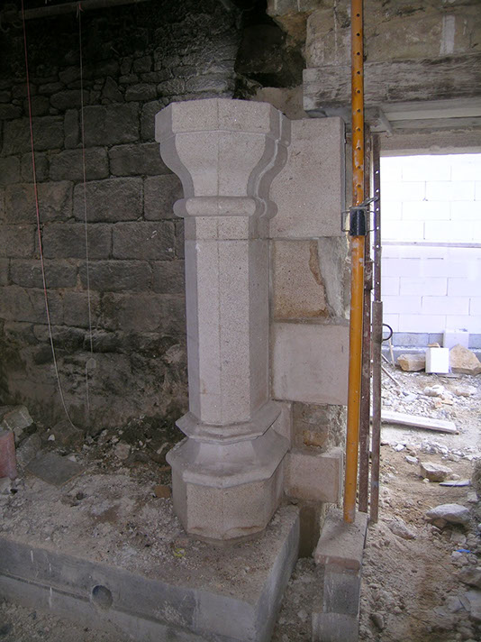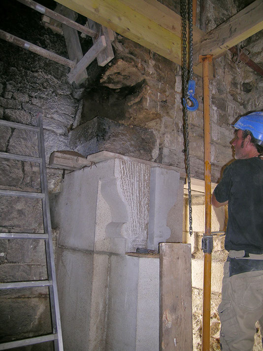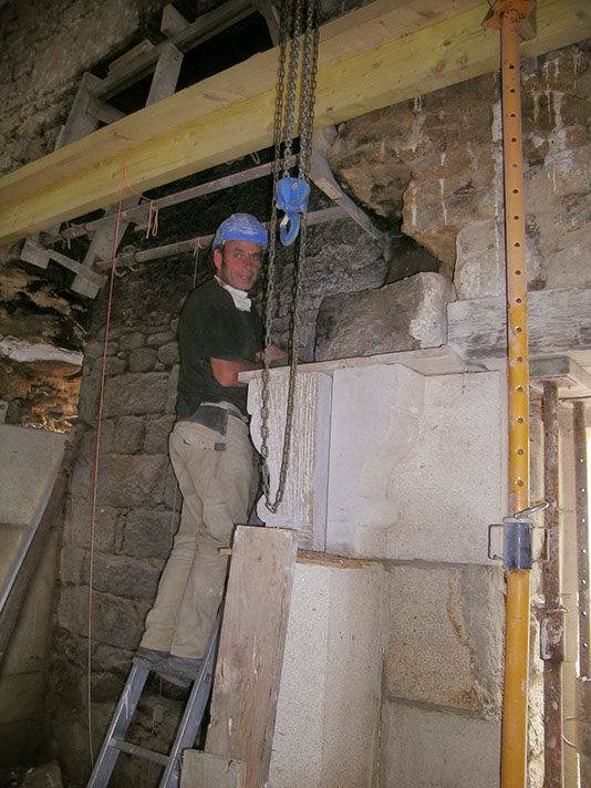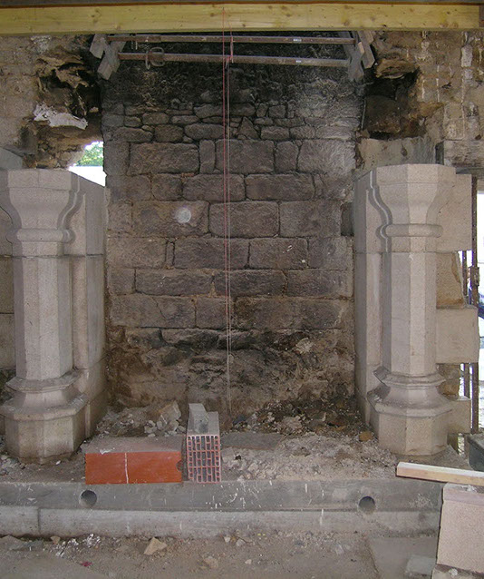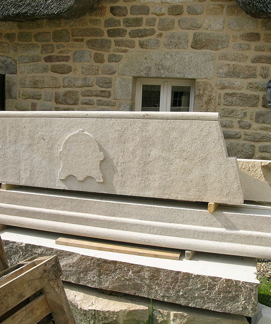 Chantier Création de cheminée gothique en granite de 'Le Saint' en Bretagne.