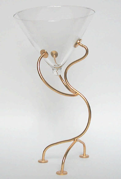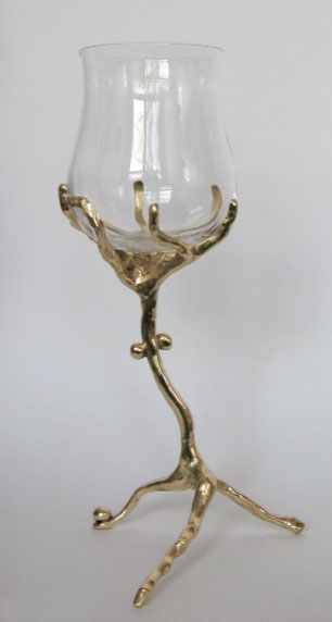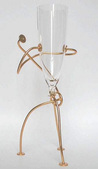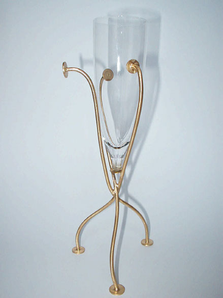 la dorure. La forme du pied représente à la fois, un pied de vignes, une femme, selon la position choisie.