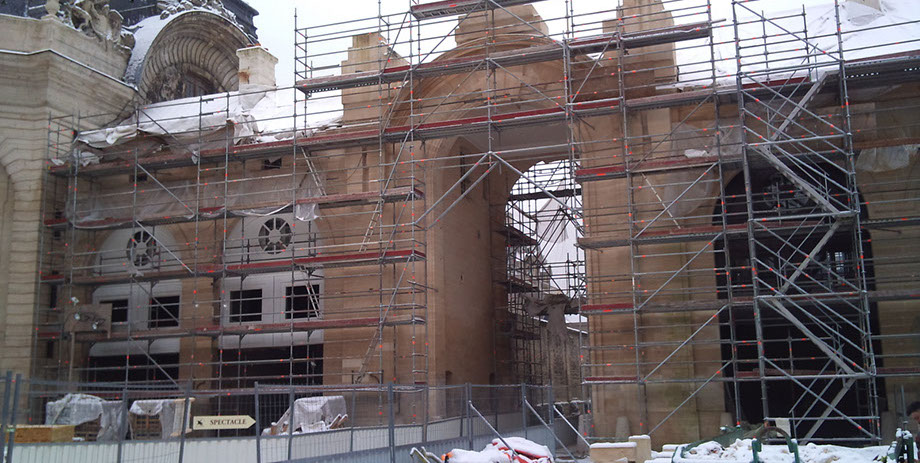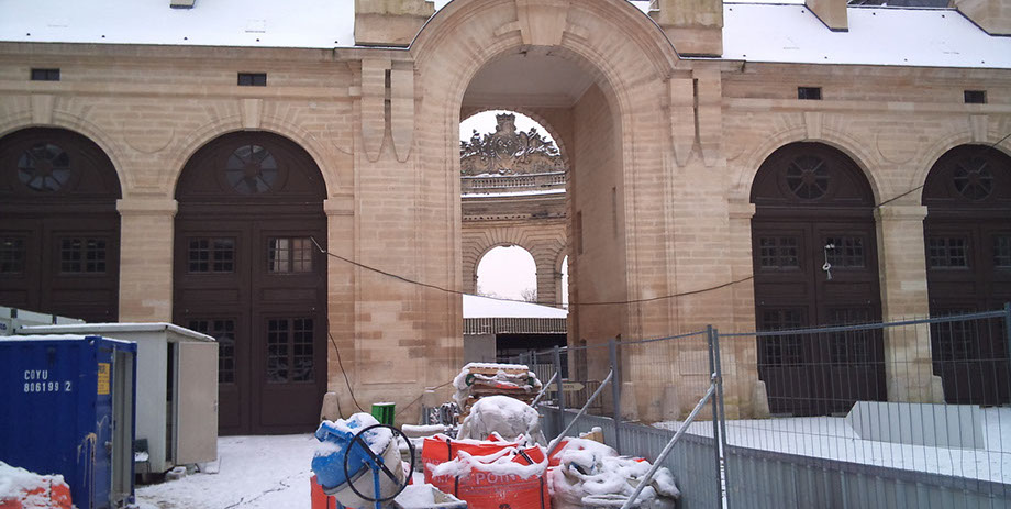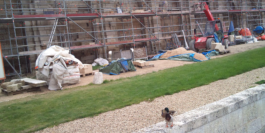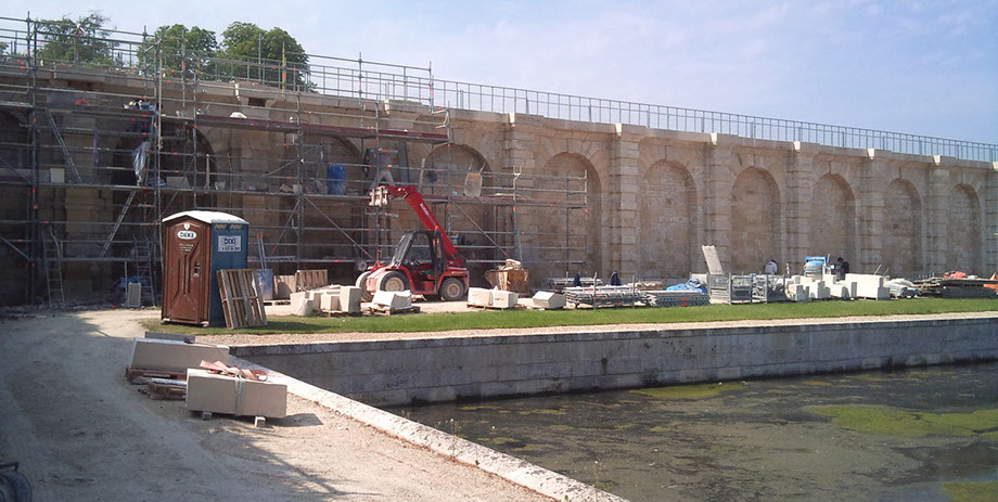 Chantier Mur de soutènement de la terrasse du Connétable, face au bassin des Serruriers. Château de Chantilly (Oise);